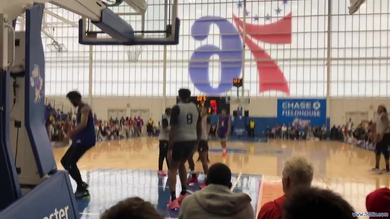 10月13日讯 今日76人组织进行了一年一度的队内蓝白对峙 赛,恩比德透明 亮相并加入 赛事 。