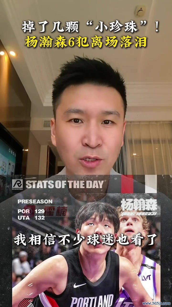 10月18日讯 季前赛收官战,开拓者129-132不敌爵士。杨瀚森末节六犯离场,并一度落泪。