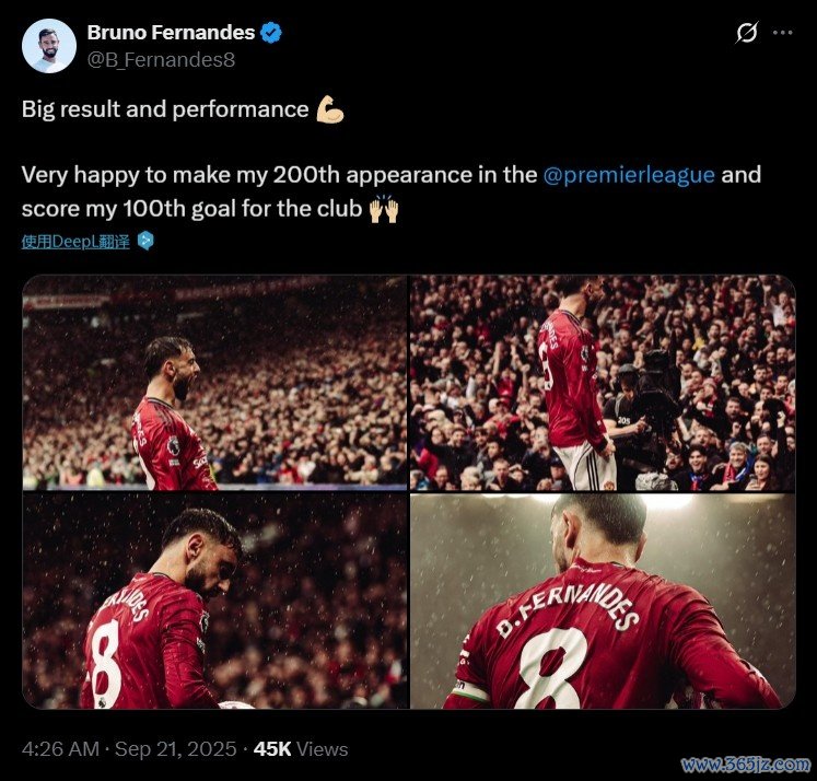B费晒出自己的赛场照意甲积分榜2024, 欧冠并配文:重要的结果和表现!很高兴达成个人英超200场和曼联100球。