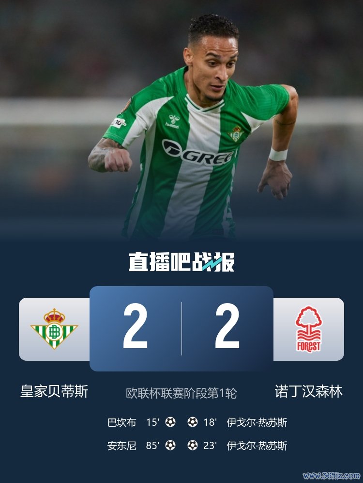 欧联杯职业联赛 阶段第1轮,皇家贝蒂斯2-2战平诺丁汉森林, 尤文图斯安东尼绝平。