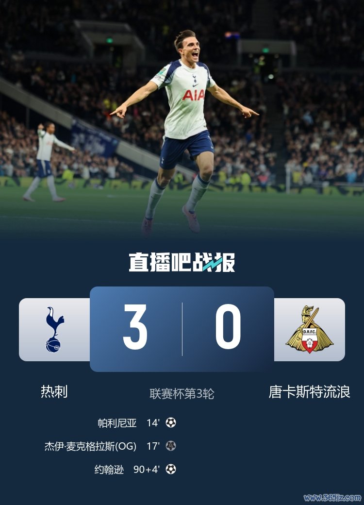 职业联赛 杯第3轮, 欧冠热刺3-0战胜唐卡斯特流浪,搏击资讯帕利尼亚倒钩得分 。