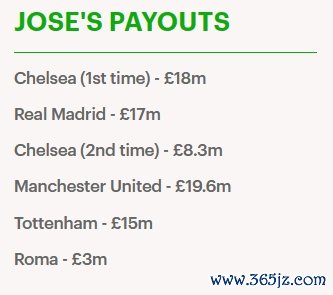 切尔西时期:2630万镑(2007年首次被解雇获1800万镑,2015年830万镑)