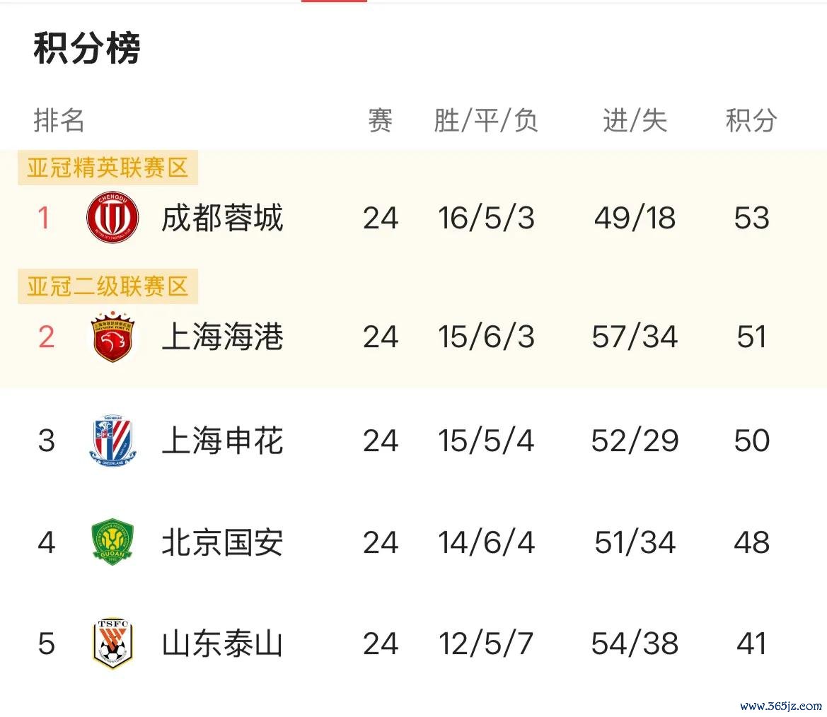 很显然这样的结果,直接影响了24轮之后中超的争冠排名格局!对于3:3平泰山队的申花来说,争冠的形势变得越发严峻起来!