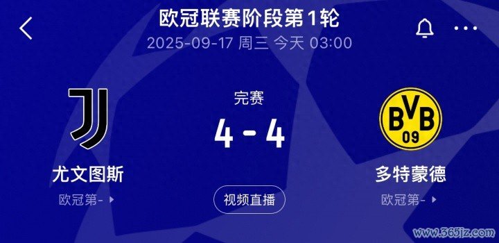 直播吧09月17日讯 欧冠尤文vs多特,双方上半场0-0闷平,下半场双方进8球!