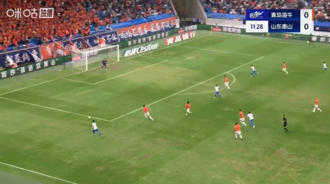 泰山客场应战 领跑 !李小恒顶球破门,刘洋助功 !第12分钟,卡扎直塞策动,刘洋左路传中,无人盯防的李小恒顶球冲顶破门,青岛海牛0-1山东泰山!↓