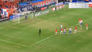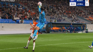 第90+1分钟,刘洋主罚定位球射球 被韩镕泽化解。↓